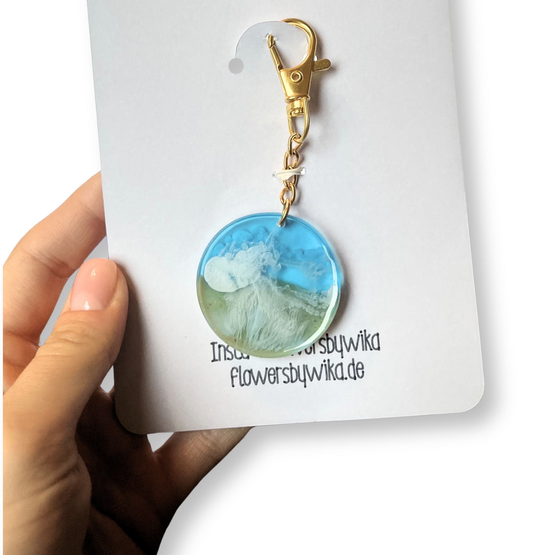 Dieser Schlüsselanhänger erinnert an Wellen & Urlaub.