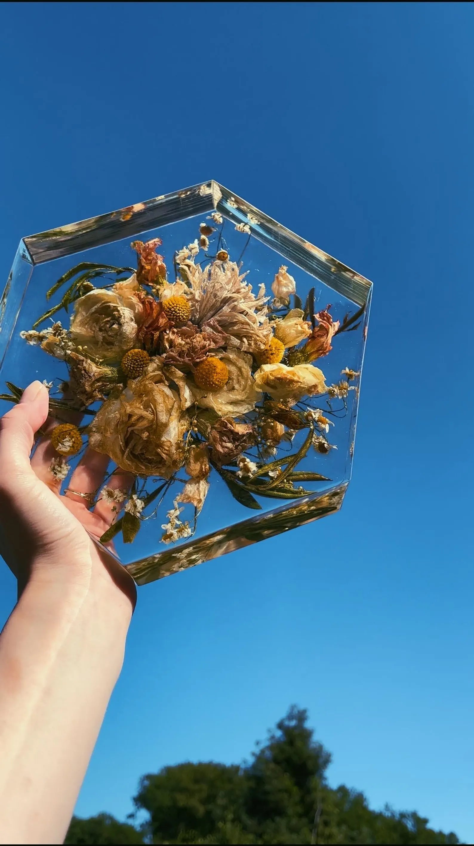 Du möchtest deinen Brautstrauß konservieren? Verewige deinen Brautstrauß in Epoxidharz. Das ist eine richtig schöne und edle Art, deinen Hochzeitstag immer vor Augen zu haben. 💕